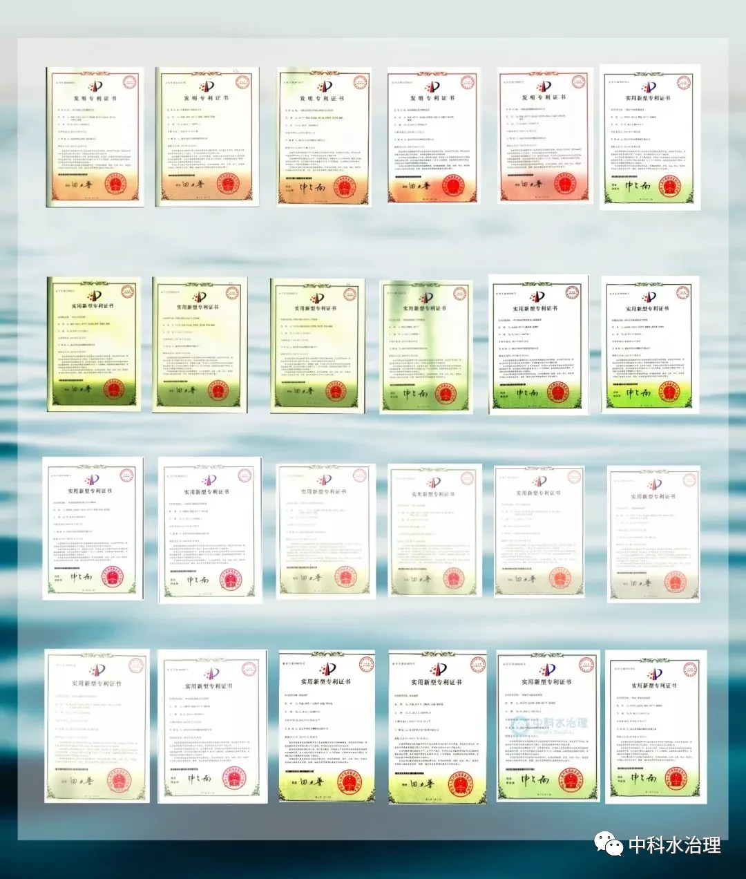 2011年,中科水治理獲得國家“高新技術(shù)企業(yè)”認(rèn)證,完成股份制改造,中科院成為公司第二大股東。上圖為公司獲得過的多項(xiàng)專利證書。