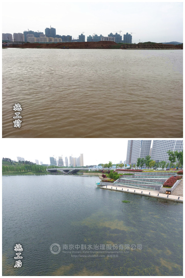 秀山湖常水位水面面積共計42萬㎡,是截止目前,中科水治理已竣工驗收項目中施工面積最大的湖泊。整個工程完全由我司進行設計和施工,項目的順利驗收,展示了中科水治理湖泊大水體設計和施工的實力。在設計施工過程中,多個關鍵環節的突破,不僅將公司的技術水平提升到一個新的高度,而且在水生態工程行業內樹立了一個工程設計、施工一體化的新標桿。