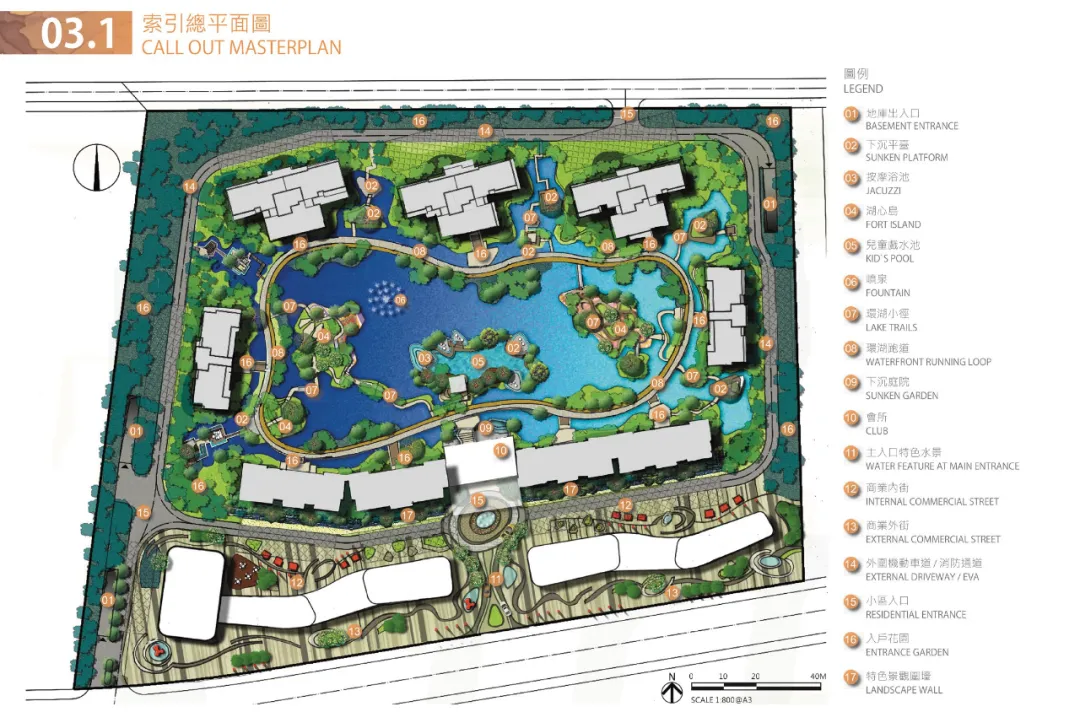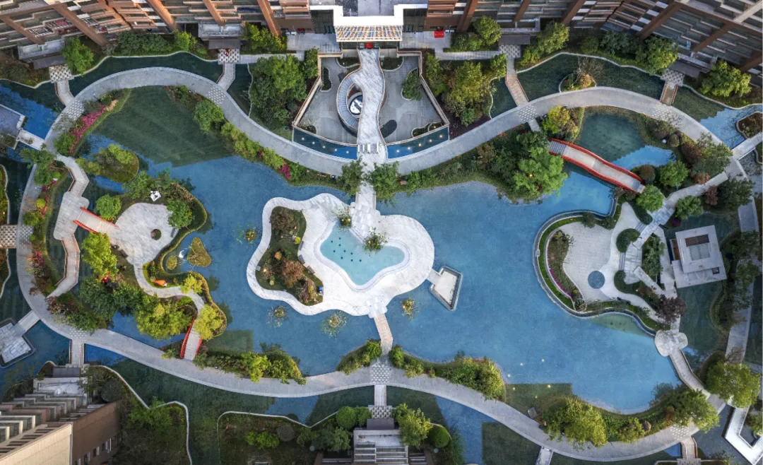 呼應(yīng)場(chǎng)地東北方向的北湖景觀,整個(gè)場(chǎng)地的空間劃分以水為脈,以島為居,通過蜿蜒變化的棧道將分散在水中的島嶼相連,形成一島一世界,一步一美景的水岸島居景觀。景觀設(shè)計(jì)秉承讓建築、自然、湖景和諧相融的理念,營(yíng)造島上郁郁蔥蔥。春有百花秋有月,聞之有落英繽紛,端之則繁花似錦,縱享一座城的島居愜意人生。