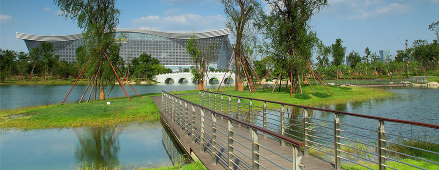 錦城湖3#、4#湖生態(tài)系統(tǒng)構(gòu)建工程自2013年3月25日開(kāi)工至5月底主要施工任務(wù)完成。水體透明度達(dá)到2米,部分區(qū)域清澈見(jiàn)底,從6月1日開(kāi)始,工程進(jìn)入優(yōu)化調(diào)整階段。2014年4月通過(guò)竣工驗(yàn)收,錦城湖工程(3#、4#湖)清水型生態(tài)系統(tǒng)構(gòu)建完工后,水體清澈,水質(zhì)優(yōu)于《地表水環(huán)境質(zhì)量標(biāo)準(zhǔn)》GB3838-2002 Ⅳ類(lèi)(TP<0.1mg/L,TN<0.5mg/L),水體生物多樣性高,沉水植物覆蓋度達(dá)到60%以上,有效抑制了水體富營(yíng)養(yǎng)化趨勢(shì),水體透明度達(dá)到2m,部分地區(qū)清澈見(jiàn)底,水體景觀性好。