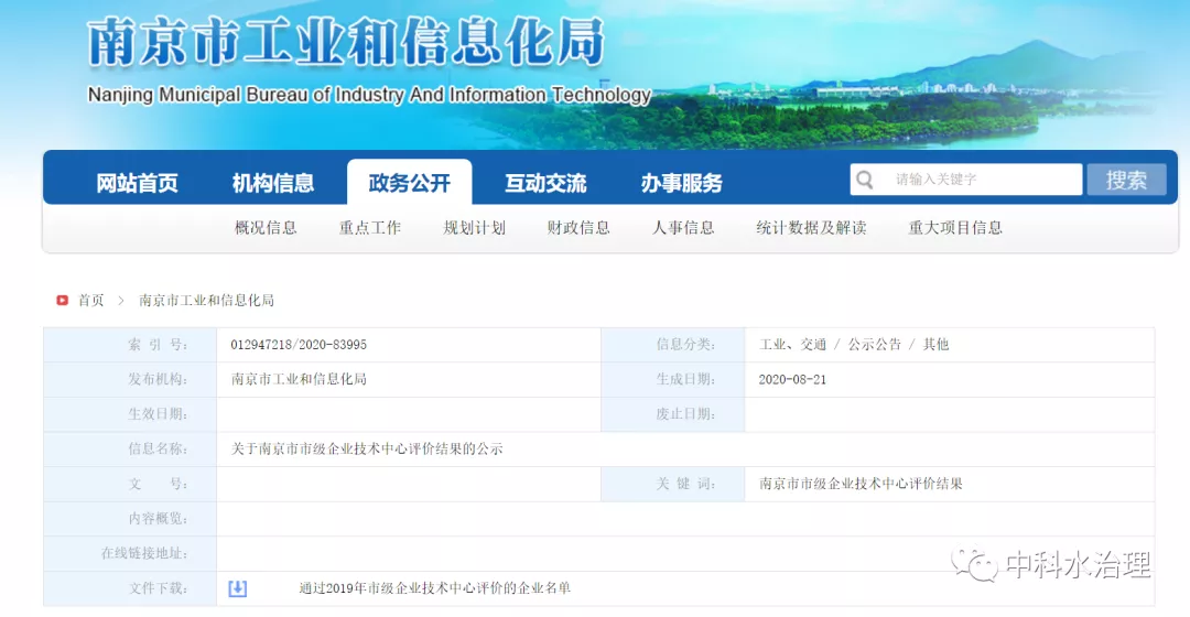 根據南京市工業和信息化局《關于做好2019年市級企業技術中心評價工作的通知》,南京中科水治理股份有限公司榮獲“南京市市級企業技術中心”認證。2014年,我司首次獲得此認證,往后每三年一次的認證均通過。