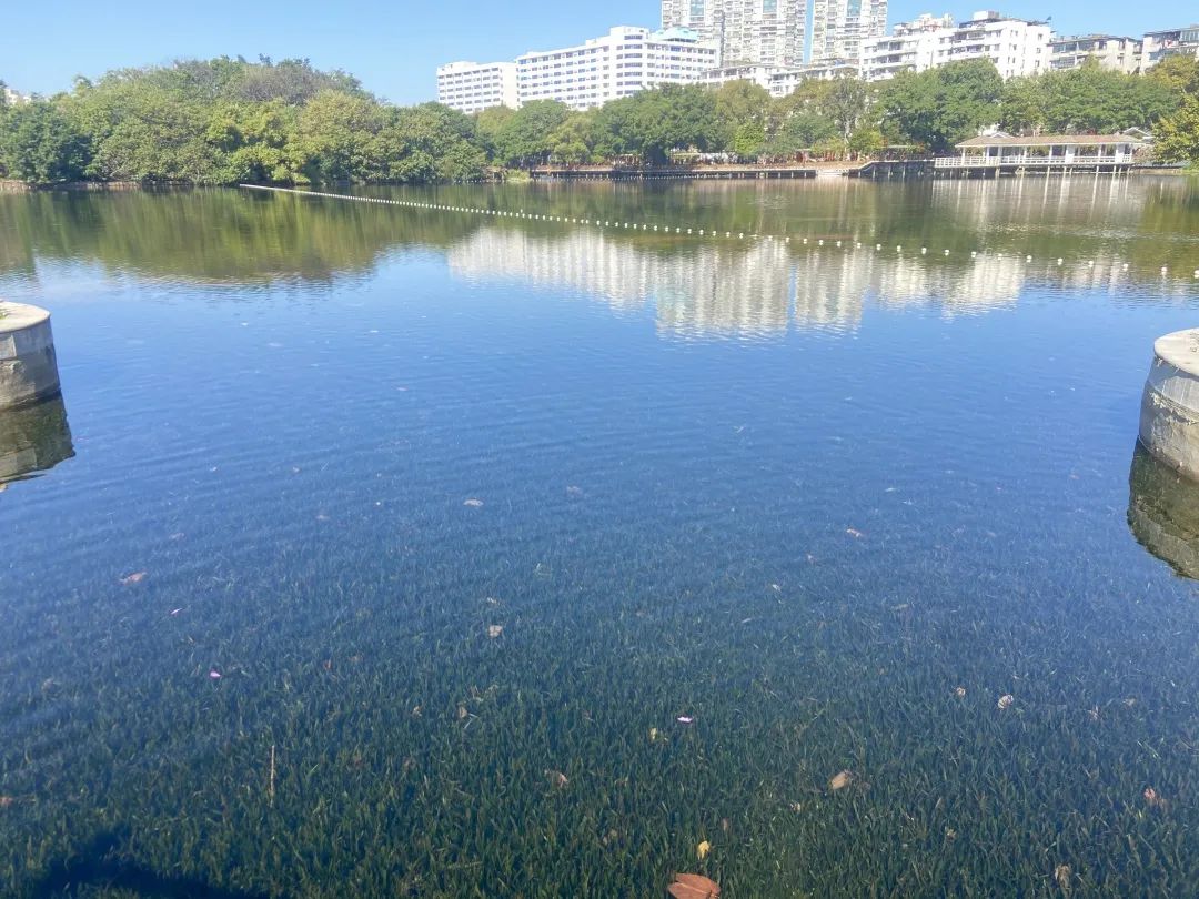 流花湖治理后主要水質指標總磷、氨氮、COD、BOD5均已達到國家地表水Ⅳ類標準,透明度清澈見底,水下森林清晰呈現,形成了良性的生態自我修復系統,完美的呈現“水清、景美、人和”流花湖生態景觀。