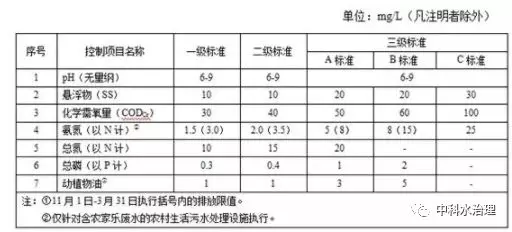 自標(biāo)準(zhǔn)實施之日起至 2020 年 12 月 31 日止,現(xiàn)有農(nóng)村生活污水處理設(shè)施按污水排放去向執(zhí)行表 1 規(guī)定的排放濃度限值。