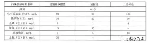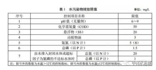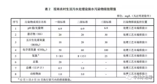 規(guī)模大于 2m3 /d(含)的新建農(nóng)村生活污水處理設(shè)施,水污染物排放限值按下表對應(yīng)的規(guī)定執(zhí)行。