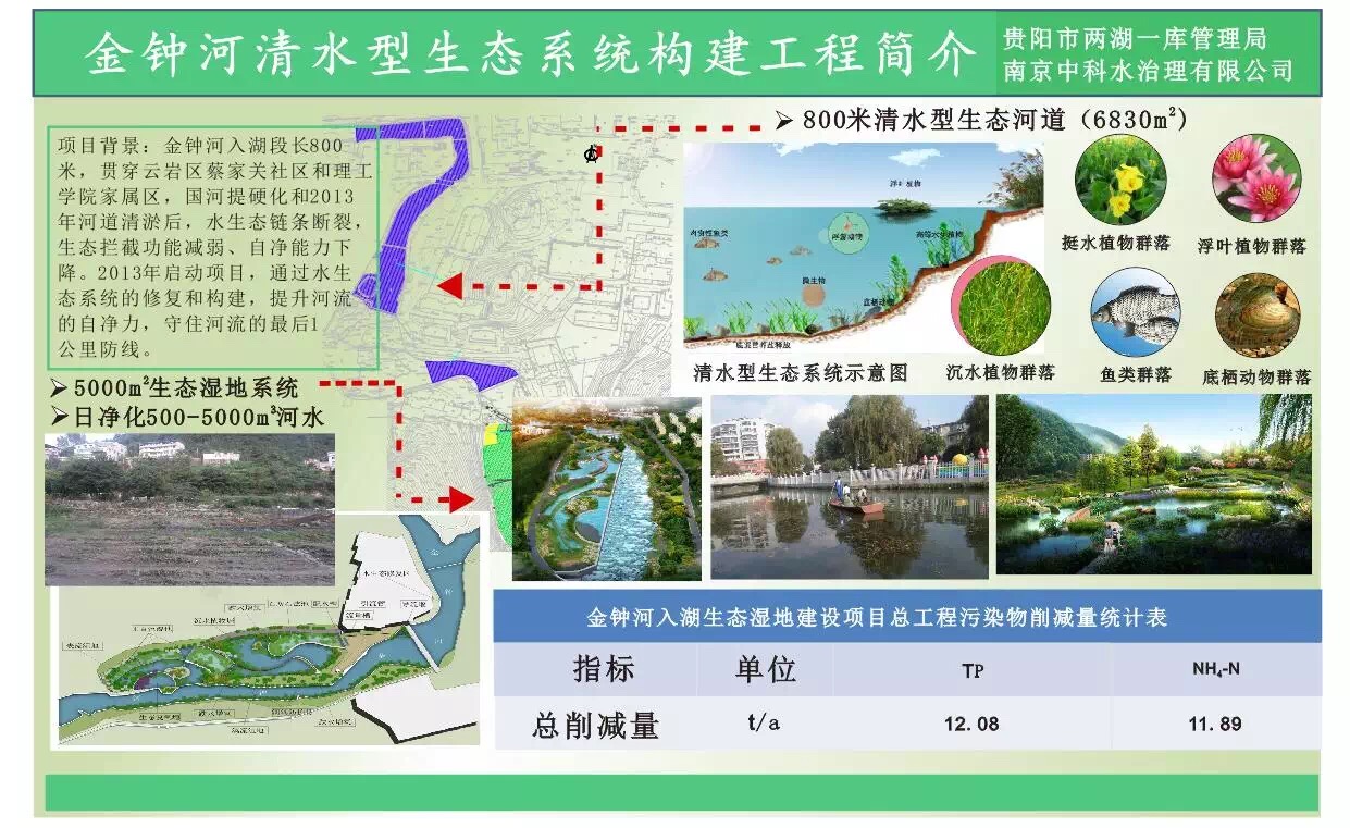 隨著經(jīng)濟社會的快速發(fā)展、城市人口的迅速增長,城市污水處理設(shè)施、收集管網(wǎng)建設(shè)嚴重滯后,黑臭河道問題長時間無法解決。今年年初,貴州省政府印發(fā)《貴州省水污染防治行動計劃工作方案》:明確到2017年,貴陽市建成區(qū)基本消除黑臭水體。在此背景下,貴陽市兩湖一庫管理局對阿哈水庫流域進行綜合整治。阿哈水庫金鐘河入湖段生態(tài)治理項目是阿哈水庫流域進行綜合整治的項目之一,為防治環(huán)境污染,充分發(fā)揮和強化河流自身的凈化能力,同時兼顧景觀設(shè)計,采用我公司清水型生態(tài)系統(tǒng)構(gòu)建技術(shù)對金鐘河流域水體污染進行防治。