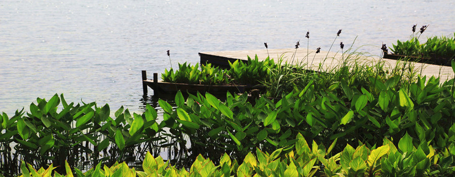 ?武漢園博園景觀湖清水型生態(tài)系統(tǒng)構建工程水域面積約58000m2,平均水深1.7m,引水水質(zhì)為劣V類,雨水面源徑流中含有綠化施肥且量大。園博園景觀湖清水型生態(tài)系統(tǒng)構建的成功,不僅形成了景觀優(yōu)美、植被茂密的生態(tài)環(huán)境,更具有保護水源、凈化水質(zhì)、調(diào)節(jié)徑流、提供多種動物棲息地等功能。